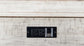 Details Made of pine veneers, pine wood and engineered wood, Distressed whitewash finish, 2 smooth-gliding drawers with dovetail construction, 2 open shelves, Vintage patinated bronze-color hardware, Casters for mobility, 2 electrical outlets and USB charging ports, Power cord included; UL Listed, Assembly required