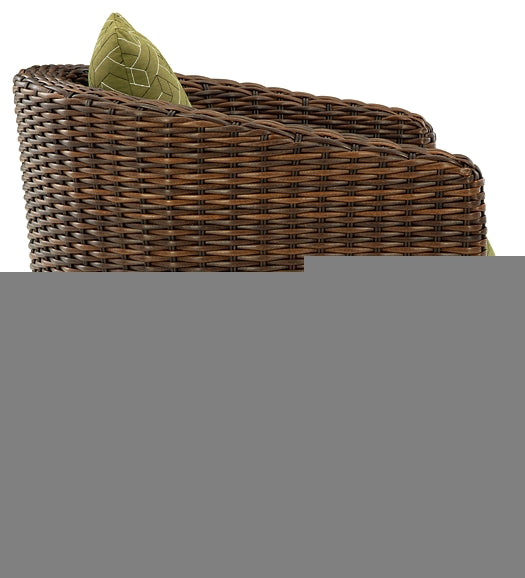 This outdoor swivel lounge chair recalls the aesthetics of nature to bring an inviting, high-style feel to your patio or lanai. Its Nuvella+™ performance fabric is made with enhanced UV resistance, so the chic green hue stays brighter for longer. Worried about the weather? Don't sweat it—the durable resin wicker withstands the elements from season to season.